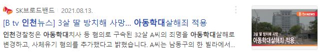 아동학대, 강력사건이 많다는 썰이 돌기도 합니다.