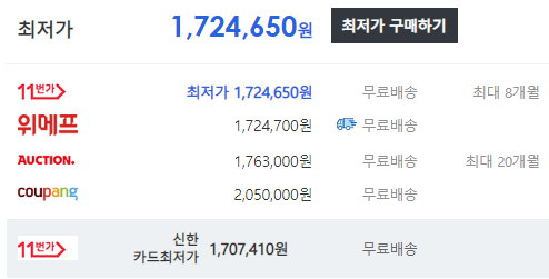 최저가가 170만 원입니다.