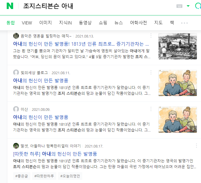 네이버에서 '조지스티븐슨 아내'로 검색하면, "아내의 헌신이 만든 발명품" 이라는 감동 일화가 수두룩하게 나옵니다.