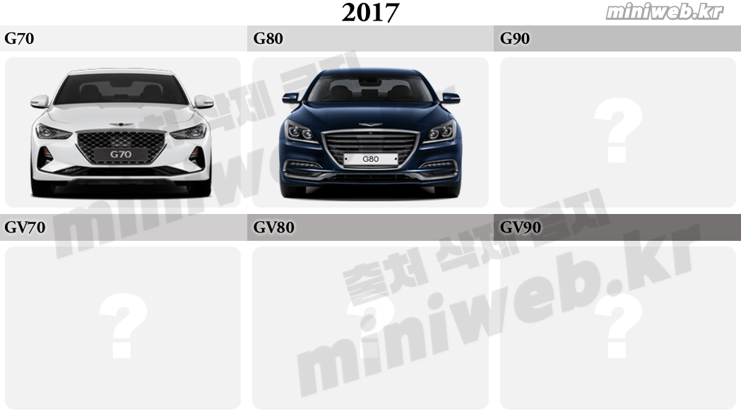 제네시스 차종을 구분할 수 있을 것 같아요.