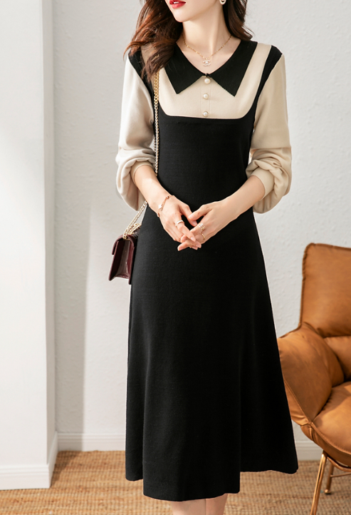 세련된 블랙-베이지 투톤 원피스입니다.