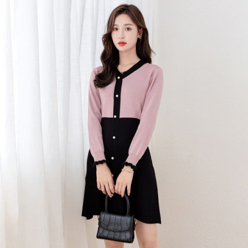 7. 로맨틱 핑크 투톤 원피스(\63,000)
