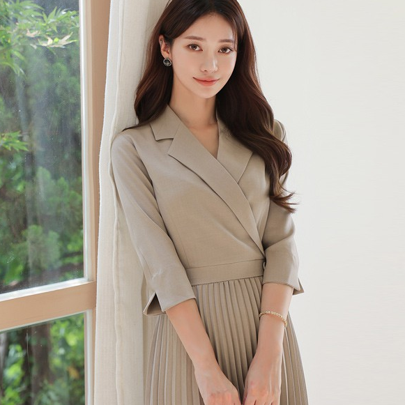 가슴 라인부터 플리츠 스커트까지 이어지는 라인이