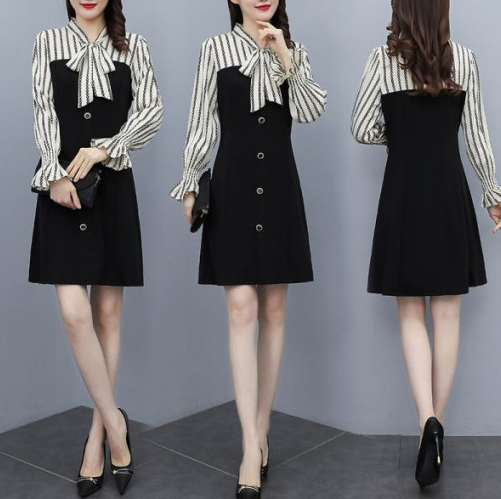 4. 스트라이프 리본 컬러 에이라인 투톤 원피스(\57,200)