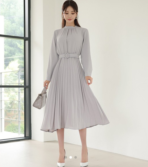 가슴 라인부터 플리츠 스커트까지 이어지는 라인이