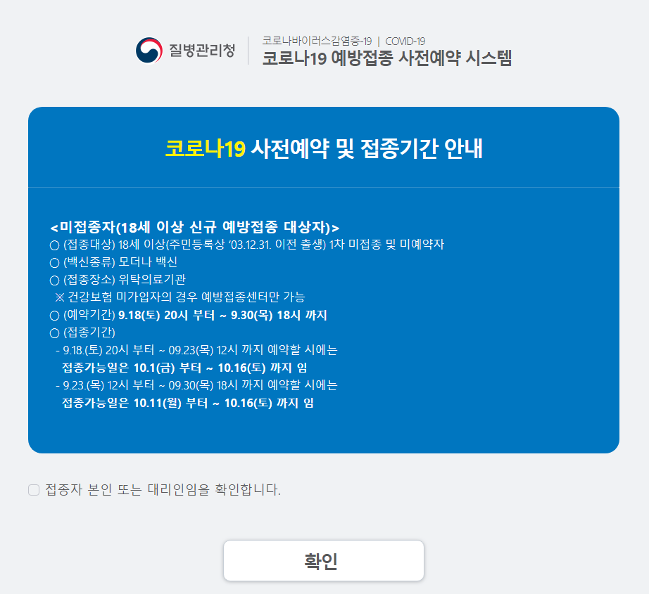 코로나19 예방접종 사전예약 시스템