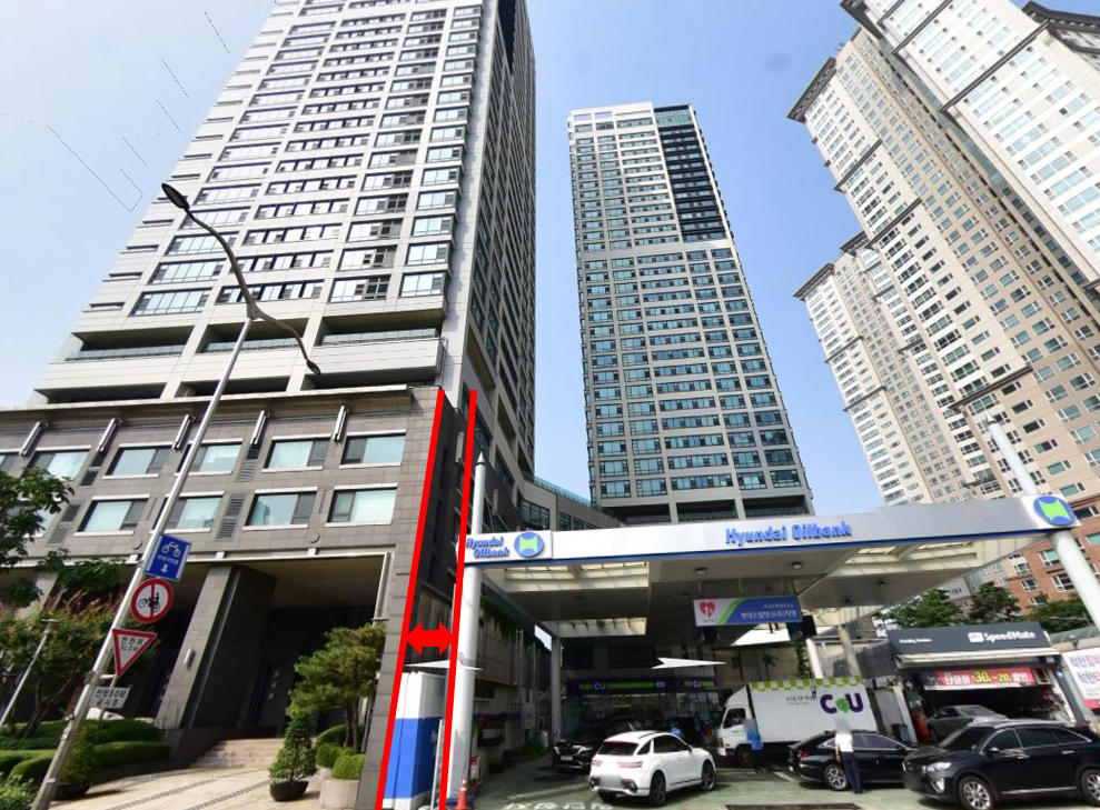 주유소 부지와의 간격은 2m에 불과합니다.