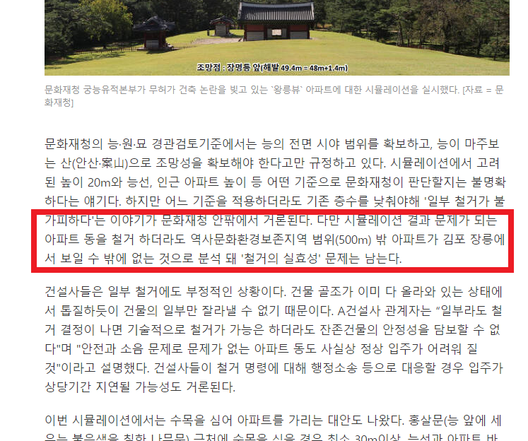 법에 규정된 문화재청 심의 없이 김포장릉 앞에 세워져 완공을 눈앞에둔 검단신도시 아파트가 이슈가 되고 있습니다. 실제 문제가 되는 부분과 어떤 동에 철거명령이 내려질지 예상되는 내용을
