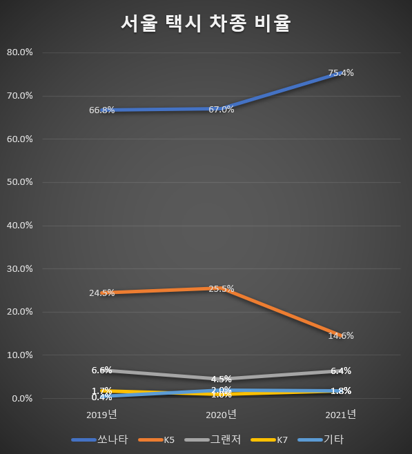 서울시 택시 차종 비율 현황 및 변화(2019~2021년)
