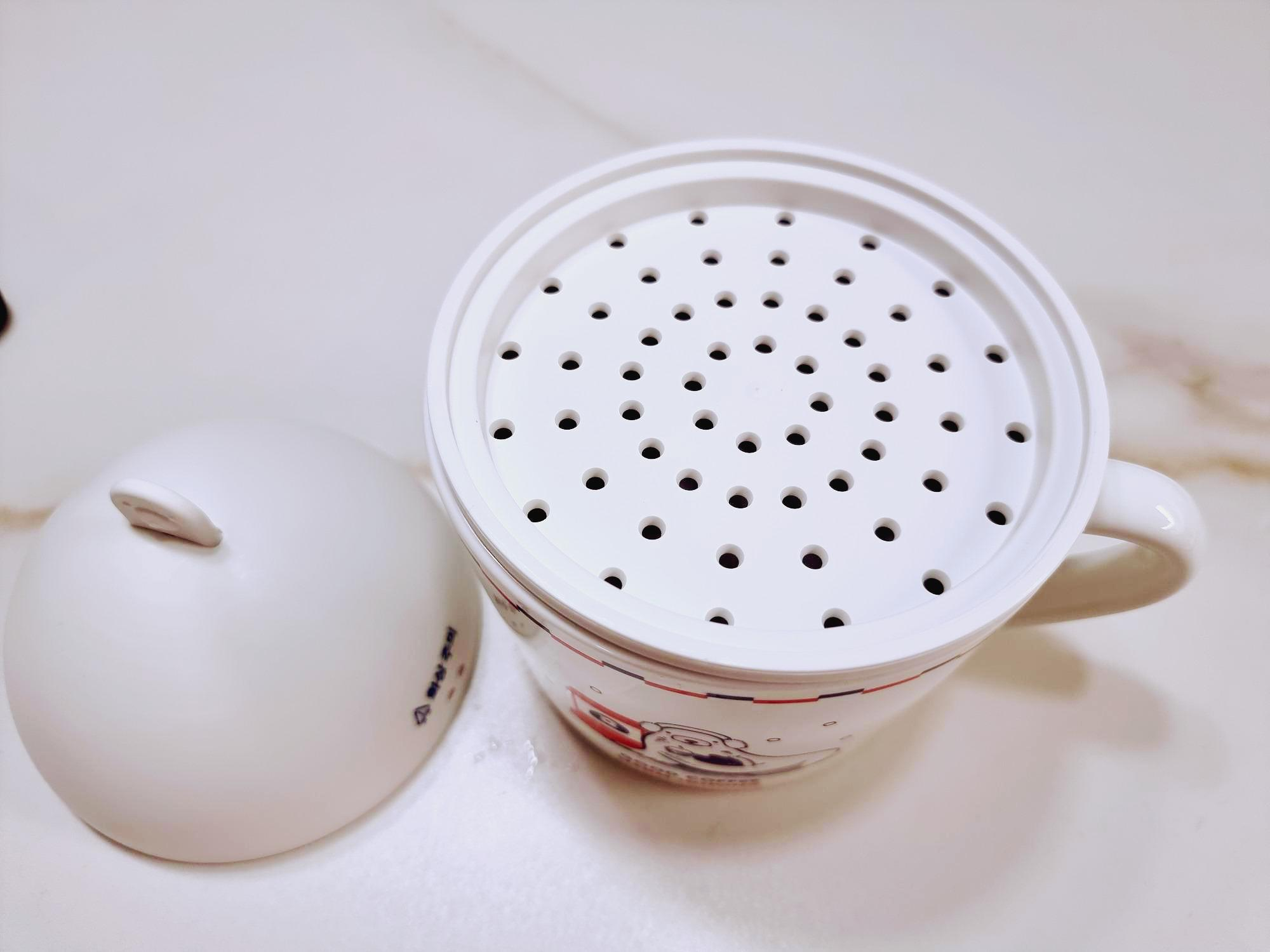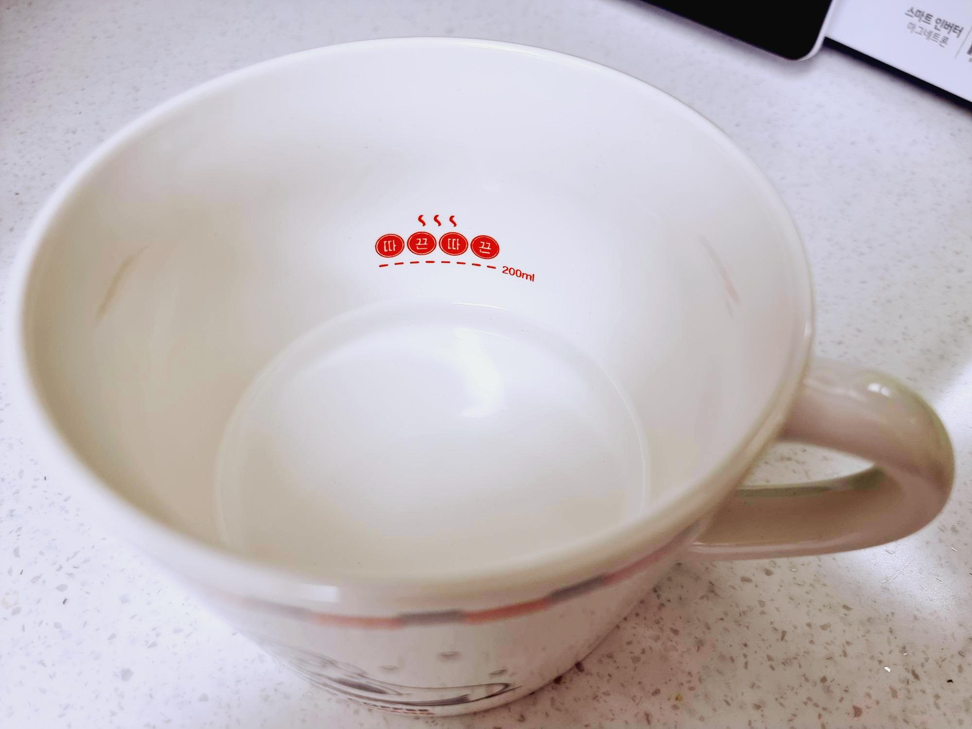 물이 끓고 있는 호찌머그의 뚜껑을 열고