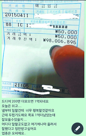 위에서 통장 잔고 9,800만 원을 인증한 성매매 여성은