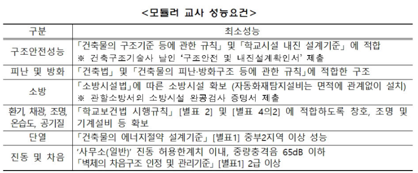 | 일반 교실(콘크리트) | 기존 교실 위에 증축이 가능하다. 상대적으로 구조적 강성이 뛰어나다. |