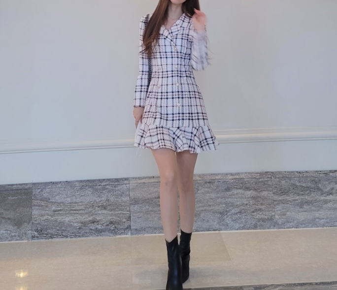 2. 숏머메이드 트위드 금장버튼 긴팔 원피스 (56,000 원)