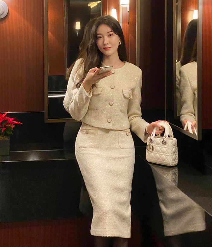 화사한 스팽글이 예쁜 셋업~ 클래식하면서도 러블리한 분위기랍니다 자켓 & 스커트 SET 코디하심 더 예뻐요!