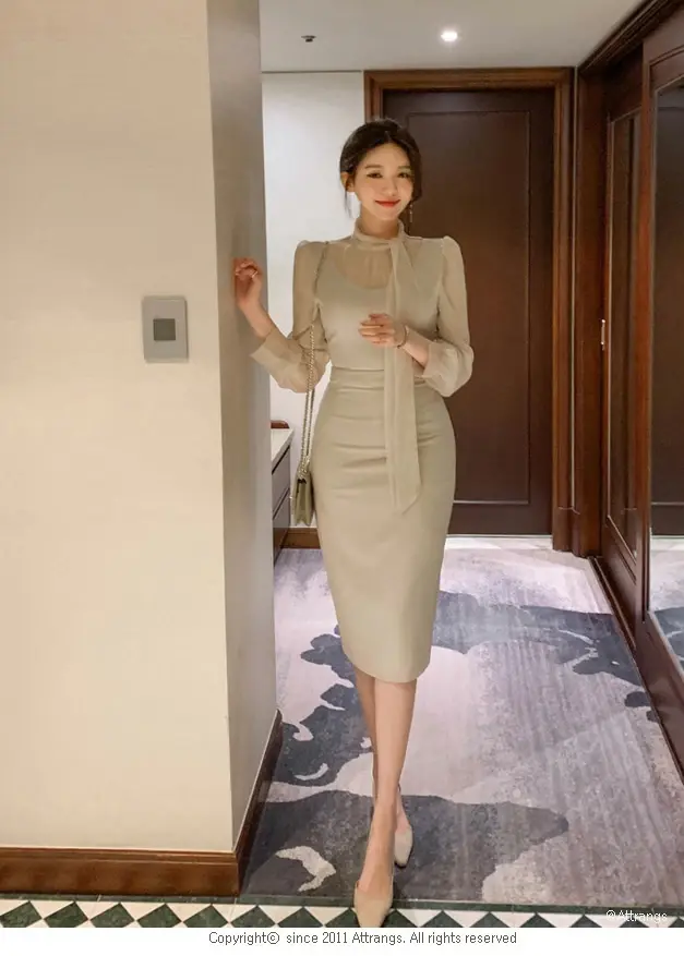아뜨랑스,attrangs,기솔,beige,SMALL,S,MEDIUM,M,봄,가을,겨울,봄,가을,겨울,원피스,드레스,미니원피스,타이원피스,리본타이원피스,슬림핏원피스,쉬폰원피스,배색원피스,쉬폰배색원피스,연말룩,파티룩,
