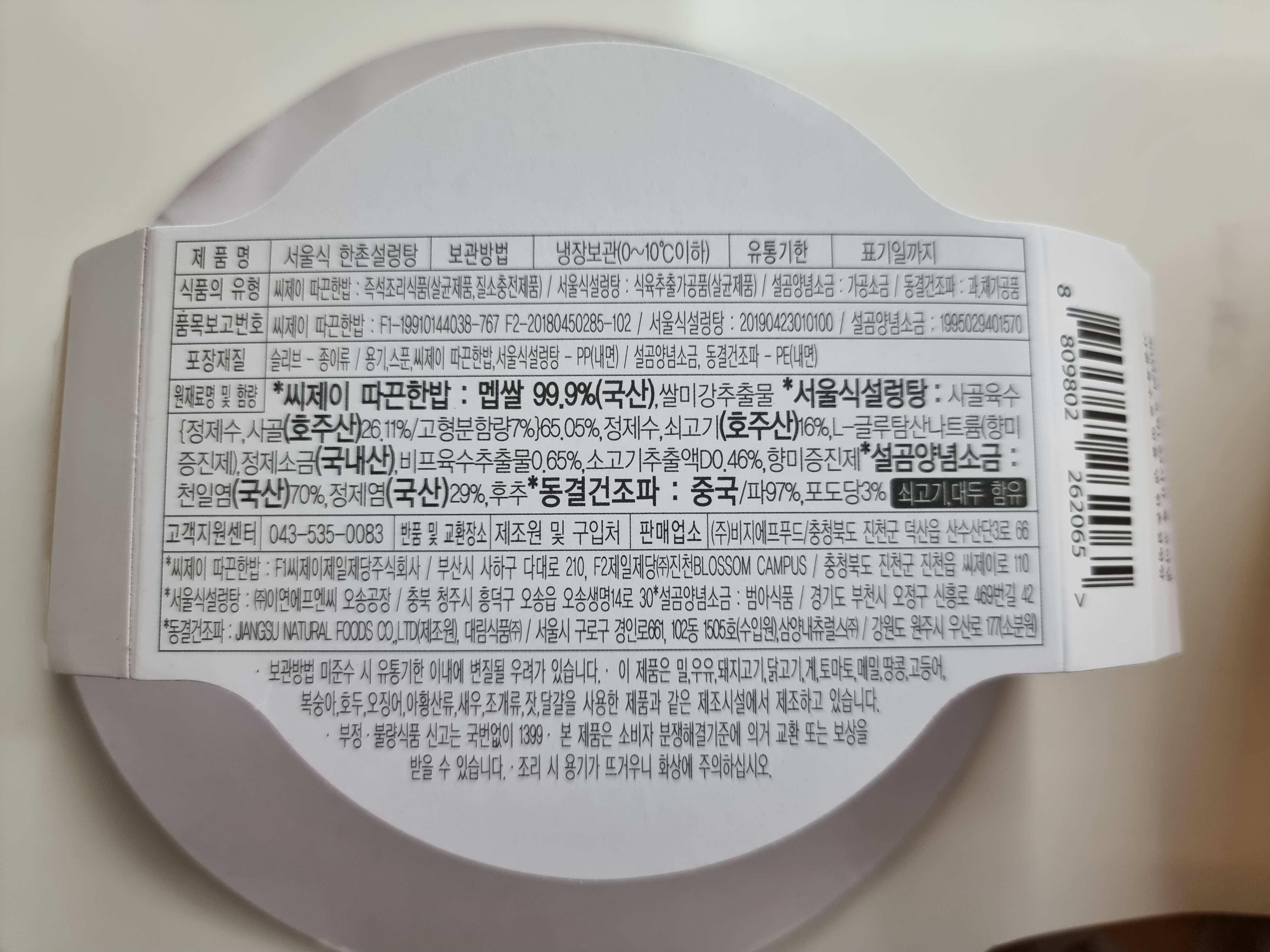 제품명 : 팔도한끼 서울식 한촌설렁탕