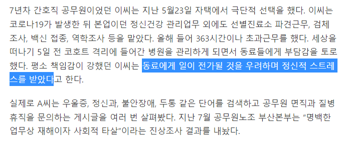 코로나 관련 업무 스트레스로