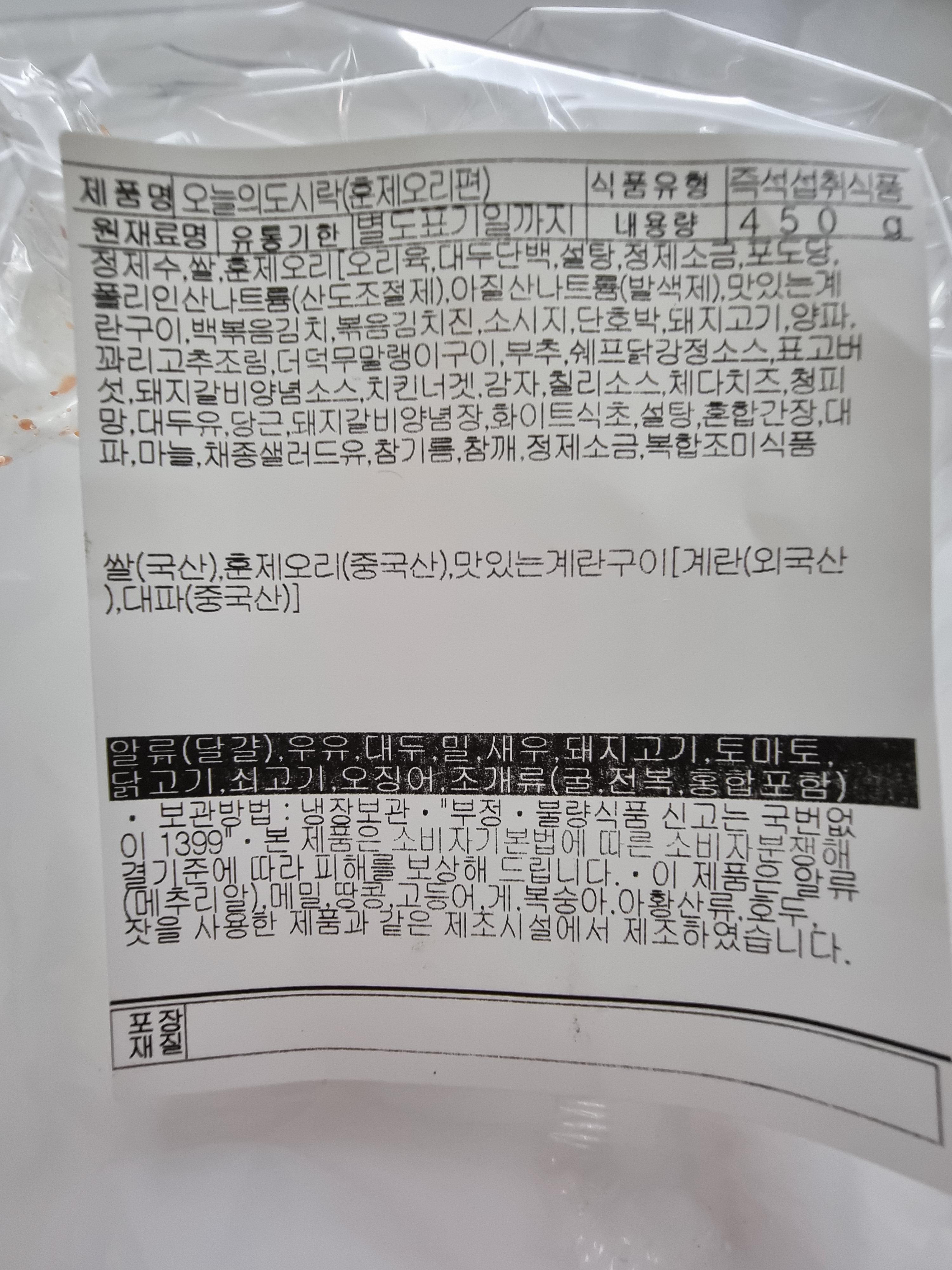 제품명 : 수미네 오늘의 도시락 훈제오리편