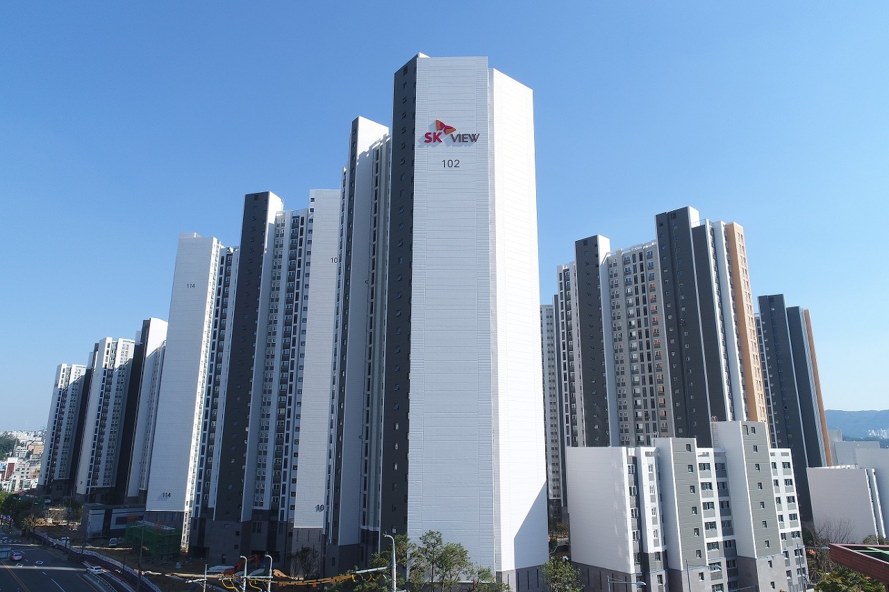 View는 '시야', '시각'이라는 뜻으로서, 거주공간을 디자인하고 건축하는 새로운 시각을 의미한다고 합니다. 사명과 결합하여 보통 SK뷰 라고 부릅니다.