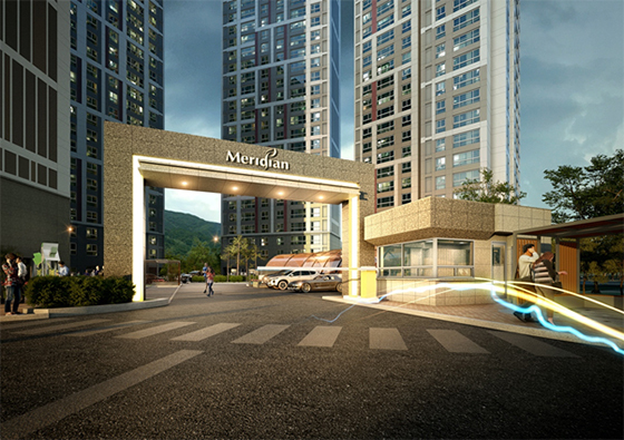 월드건설산업 사명의 '월드'와 프랑스어로 자오선, 정점, 절정 등을 뜻하는 '메르디앙'(Meridian)의 합성어입니다. 월드건설이 짓는 아파트와 그 아파트가 들어서는 도시에 예술과 미학의 절정을 담겠다는 의지를 표현한 것이라고 합니다.
