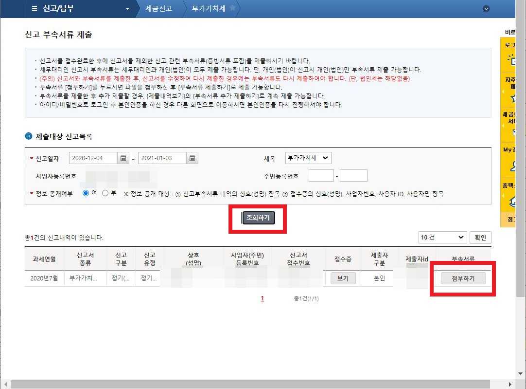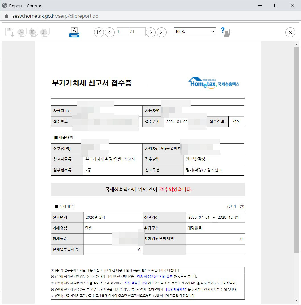 필요하신 분은 부가세 신고서 접수증을 인쇄하셔도 됩니다.