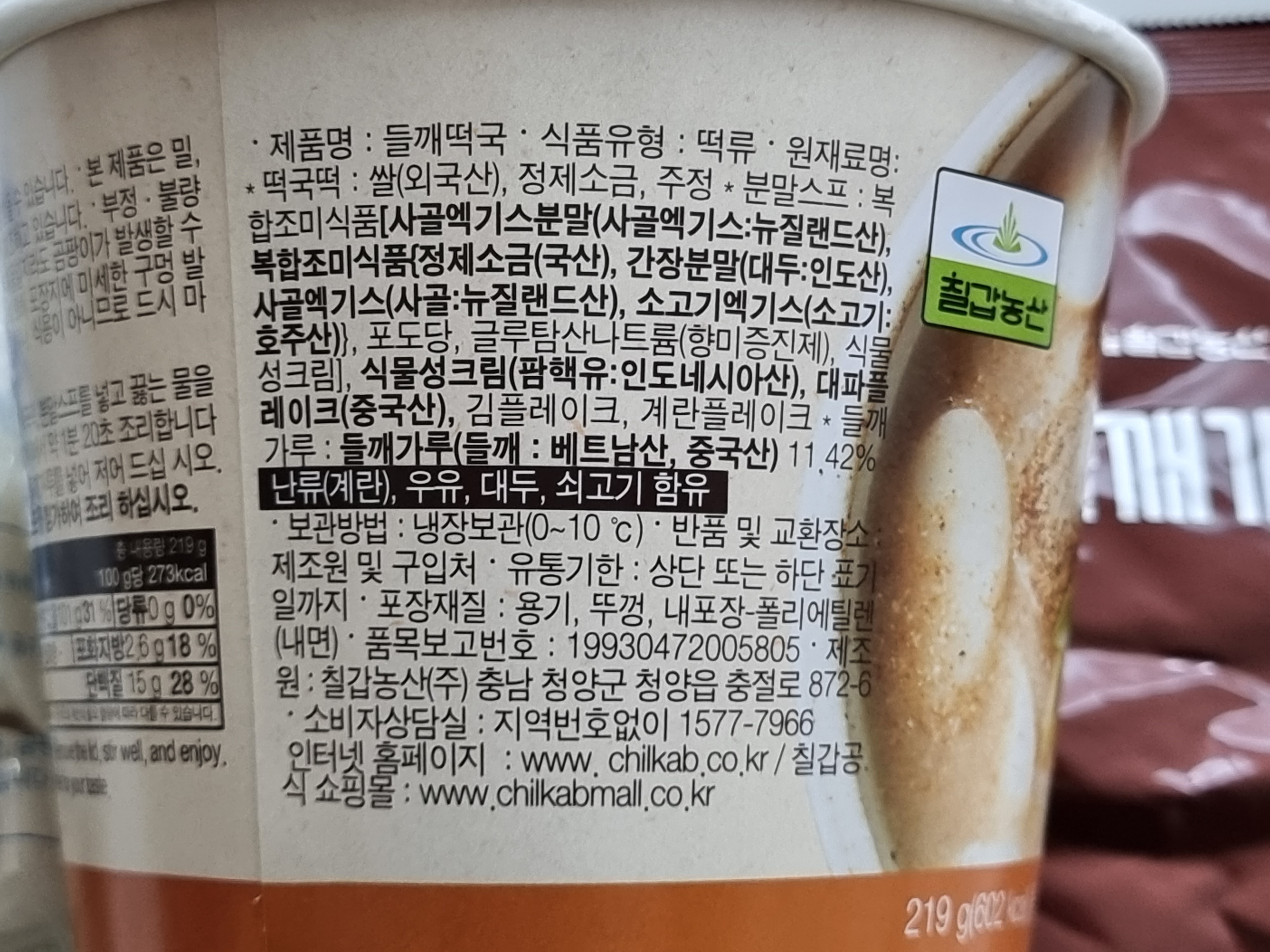 - 들깨 가루가 굉장히 많이 들어가 있어서 국물맛을 더 해주는 것 같습니다. 나트륨 양도 상대적으로 적어서 부담없이 국물까지 다 먹었습니다.