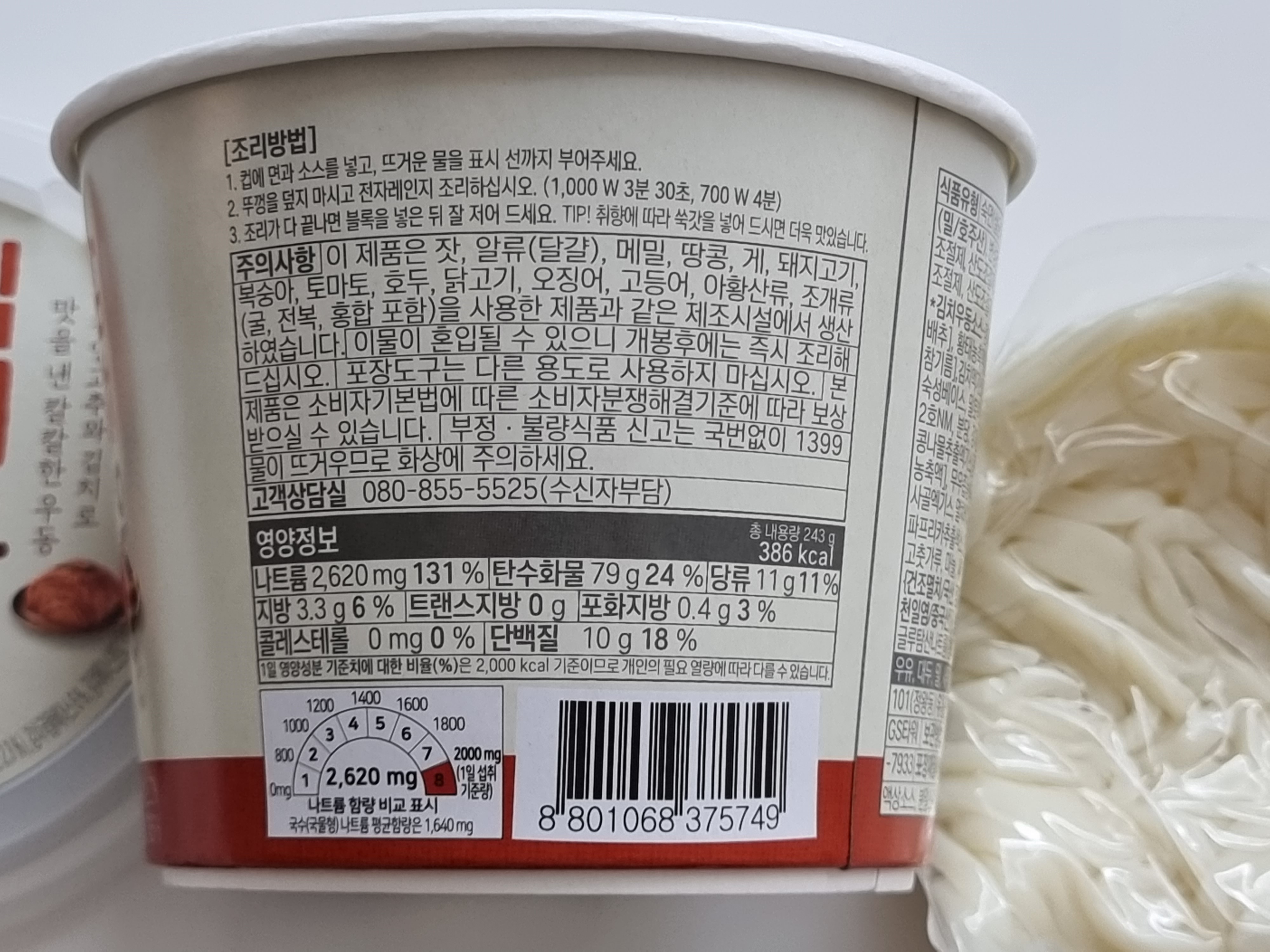 영양 정보 : 386 kcal, 나트륨 2,620 mg