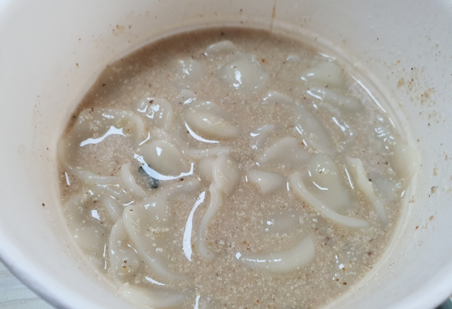 - 일단 무지무지무지 짭니다!!!!! 아니, 무슨 소금을 한 푸대 집어넣었나?!? 나트륨 함량을 봤더니 1,423 mg 이네요. 다른 제품에 비해 높지 않다고 할 수 있지만 들깨떡국의 나트륨 함량이 538 mg에 불과했습니다. 삼삼하고 담백한 국물 유형이라 나트륨 함량도 비슷해야 할 것 같은데 거의 3배입니다! 제품 설계 자체에 문제가 있다는 생각이 듭니다.