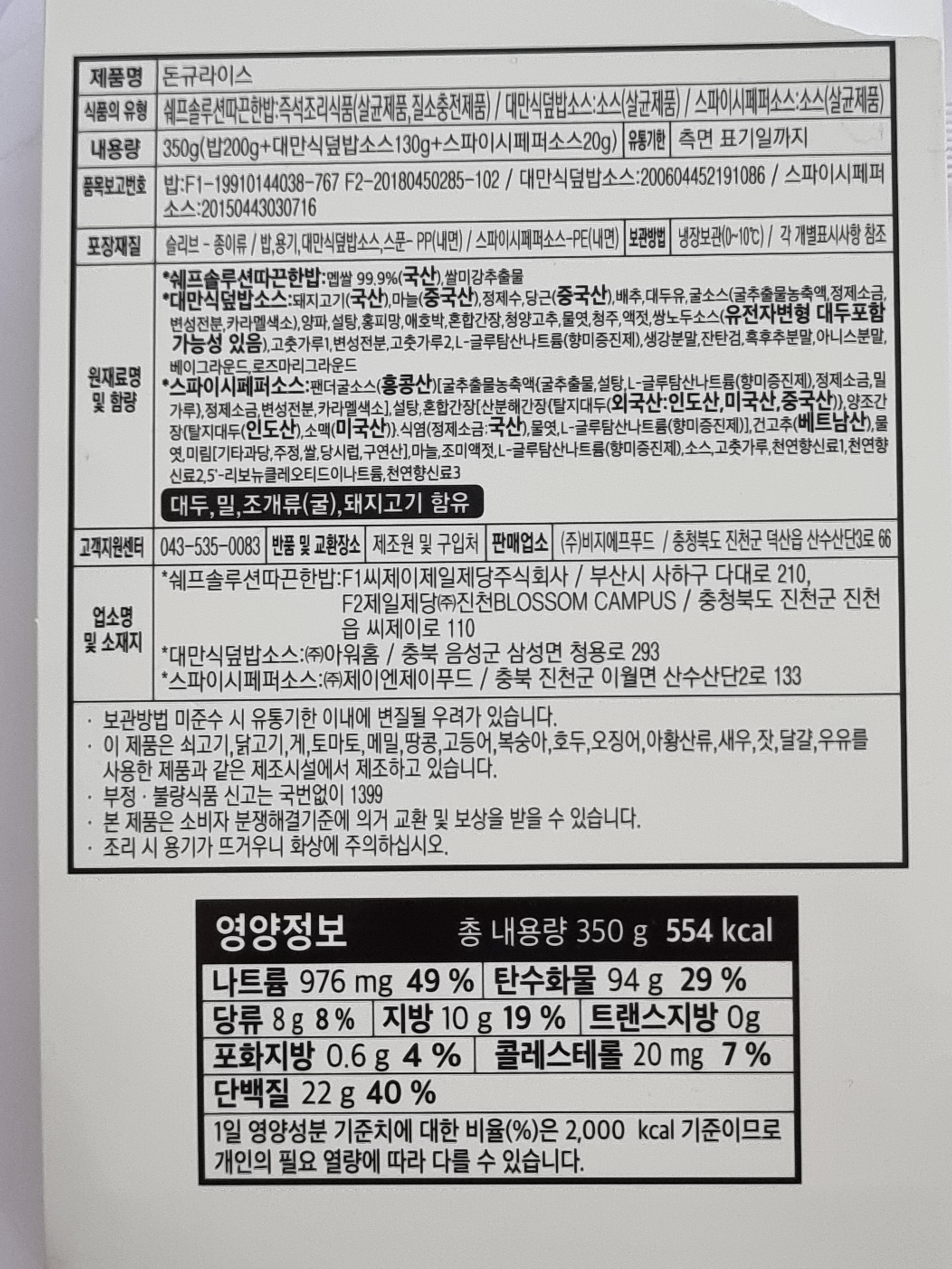 영양 정보 : 554 kcal, 나트륨 976 mg