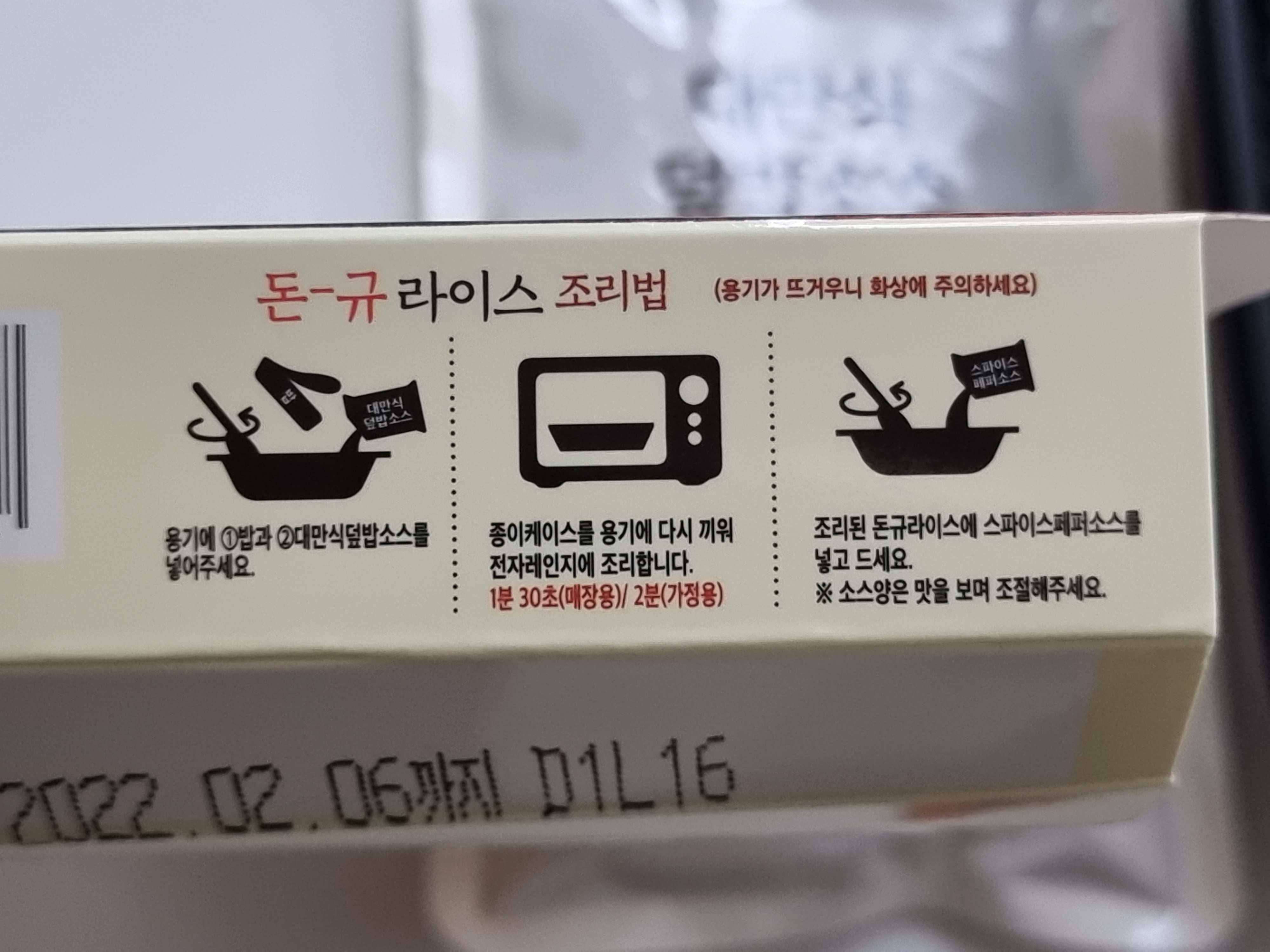 - 가정용 전자렌지로 2분 돌리라고 되어 있는데, 그러면 밥이 딱딱합니다;; 2분 30초 정도 돌리셔야 적당한 조리상태가 됩니다.