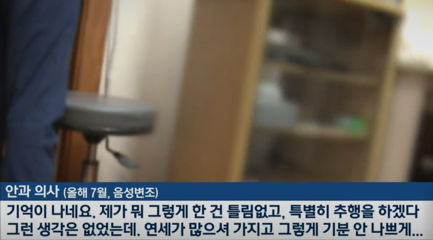 [앵커] 한 80대 여성이 평소 다니던 안과 의사에게 강제 추행을 당했다고 그 가족들이 제보해 왔습니다. 해당 의사는 가족들이 항의하자 '나이가 많아 기분이 안 나쁠 줄 알았다'고 해명했습니다.