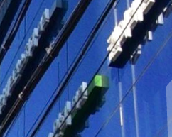 초록색 가로 바(BAR) 위에 하얀색 입체 간판