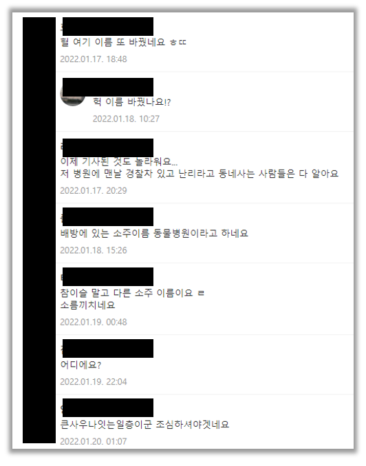 게다가 소주 이름과 동일한 동물병원이 있는지