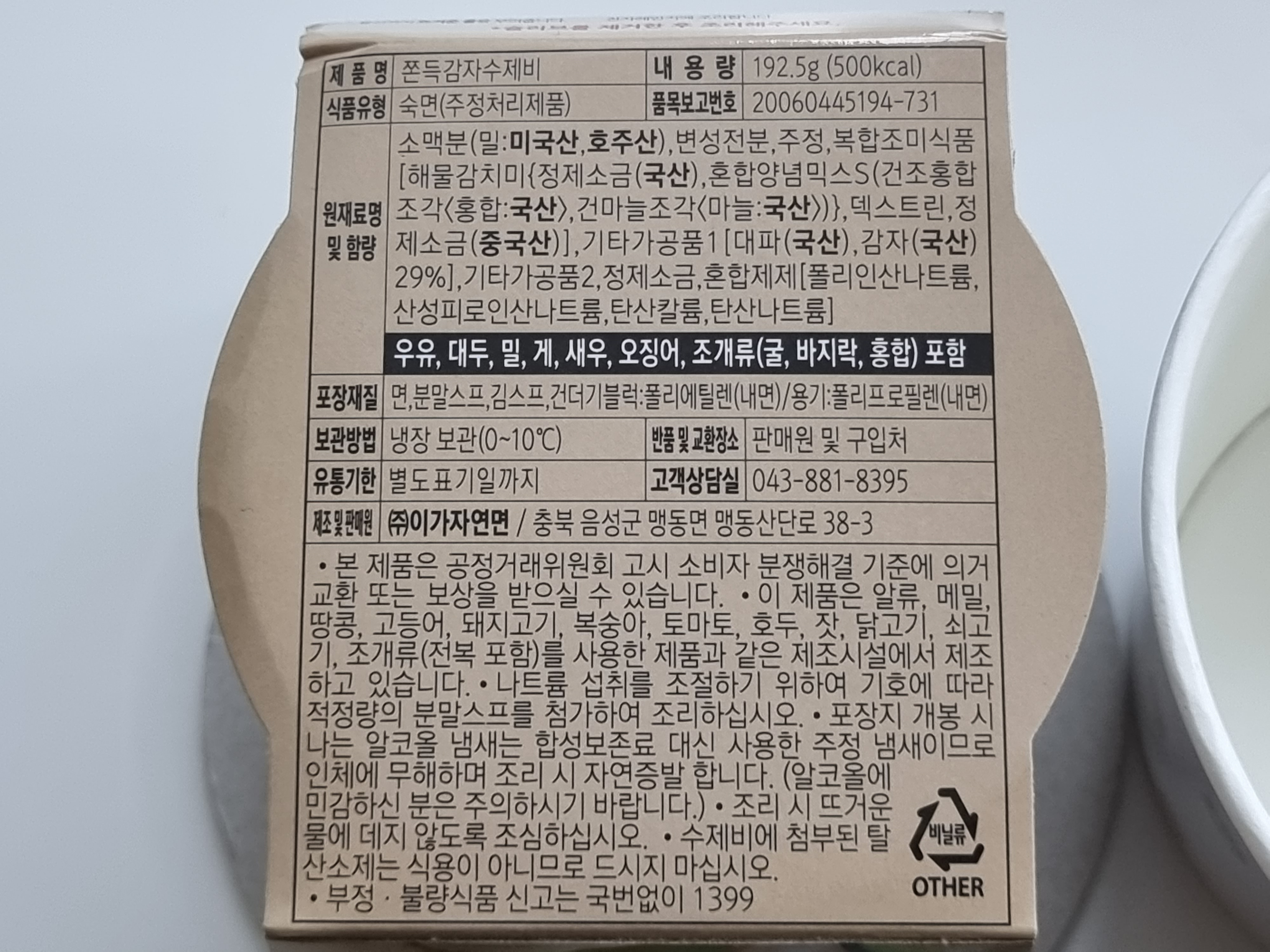 제품명 : 이가자연면 쫀득감자 수제비