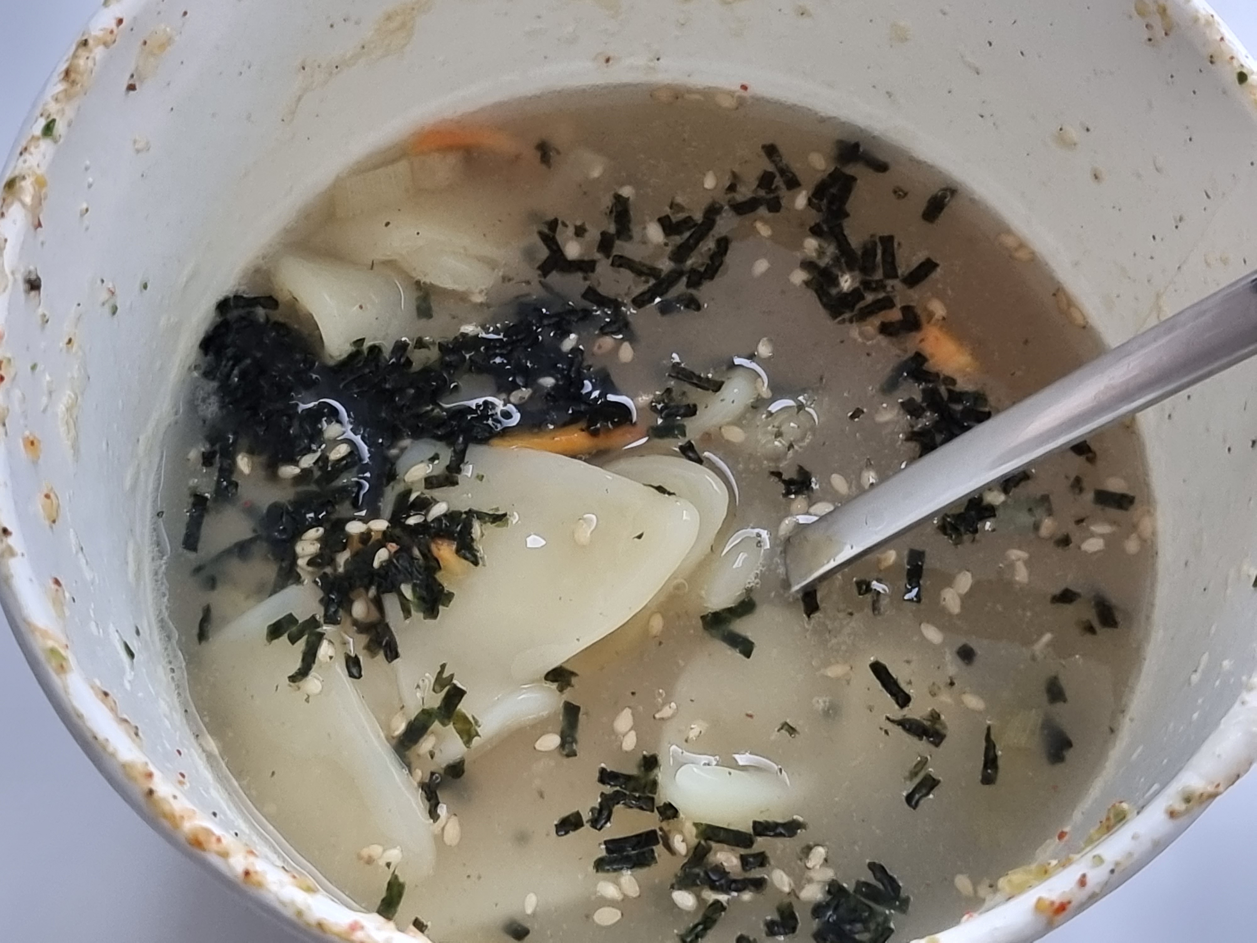 - 약간의 칼칼함이 있습니다. 전혀 매운 양념이 안 들어간 요리에 청양고추 몇 조각 썰어넣은 맛? 어른이 먹기엔 아주 심심하지만 유초딩 아이들은 '매워' 라고 할 수 있는 맛입니다.