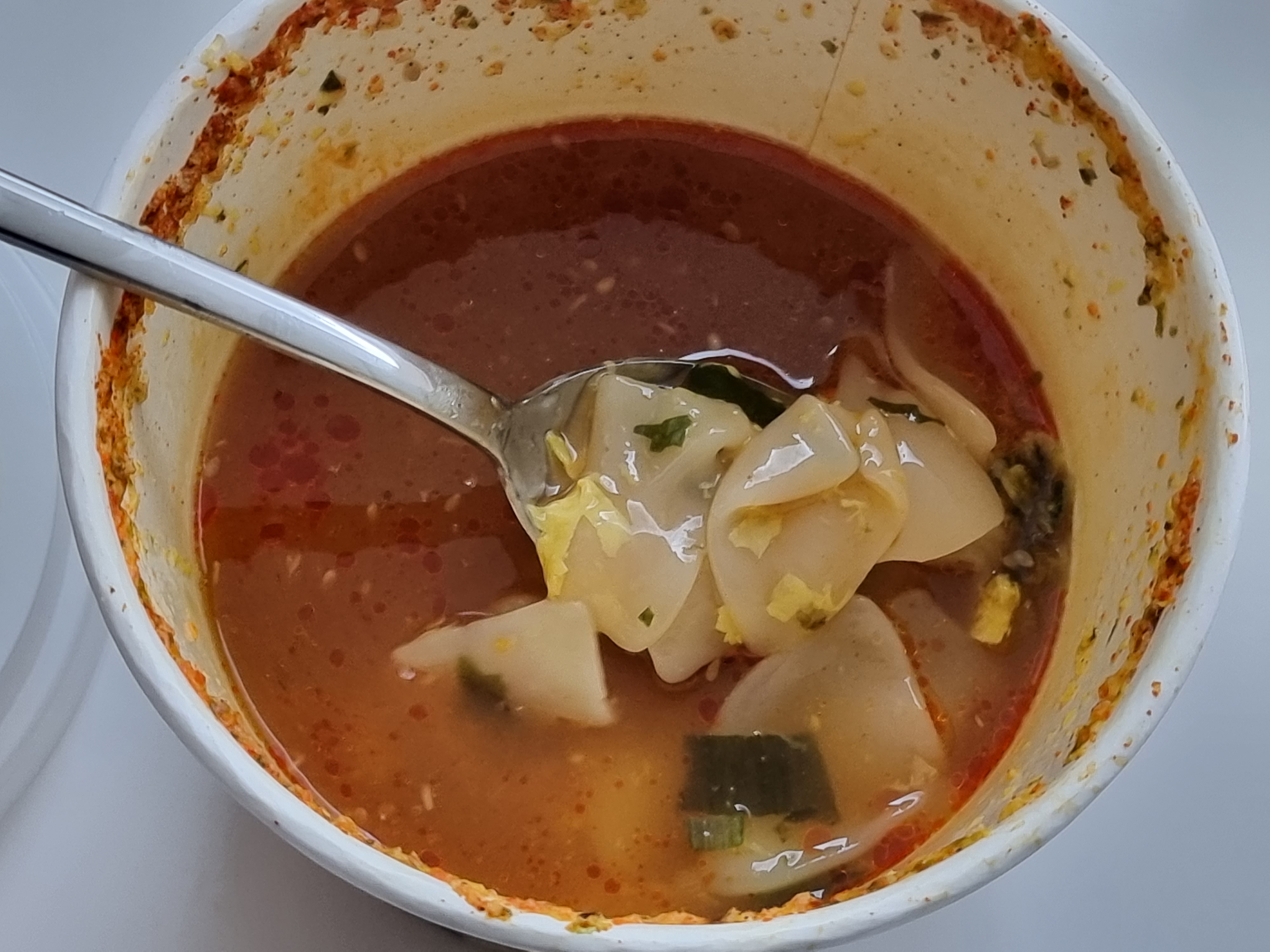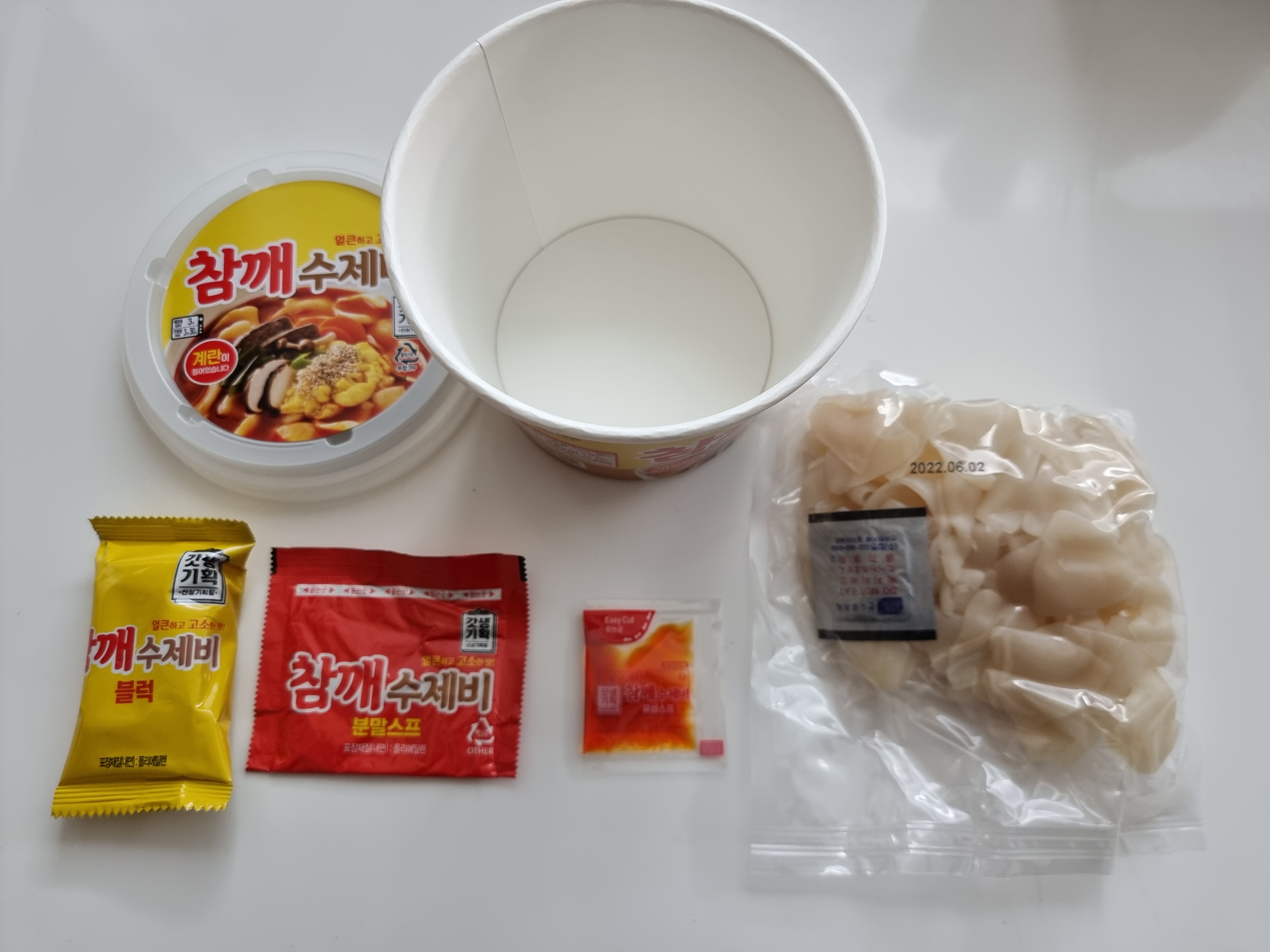 - 제품 뚜껑과 커버에 적혀 있는 것처럼 얼큰하고 고소합니다. 계란 블럭이 들어있어 담백한 맛도 함께 느끼실 수 있습니다. 수제비는 쫄깃쫄깃하고 먹으면 먹을수록 "생각보다 괜찮네" 하고 느꼈습니다.