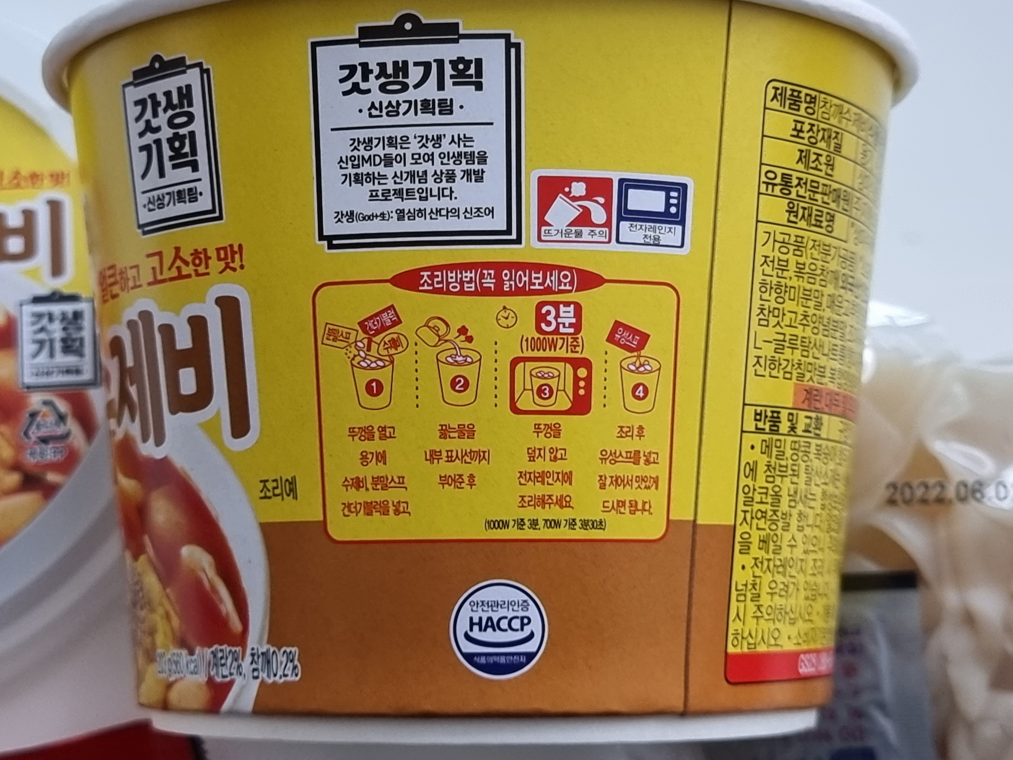 - 가정용 700W 전자레인지에서 조리방법대로 3분 30초를 돌렸는데, 넘치지는 않았지만 아슬아슬했습니다. 만약을 위해 접시 하나를 깔고 돌리시면 좋겠습니다.