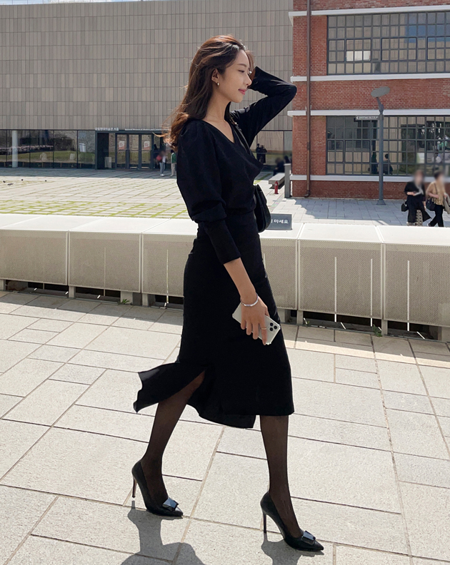 원피스를 착용한듯, 여성스러운 무드가 돋보이는 블라우스&스커트 셋업 :)