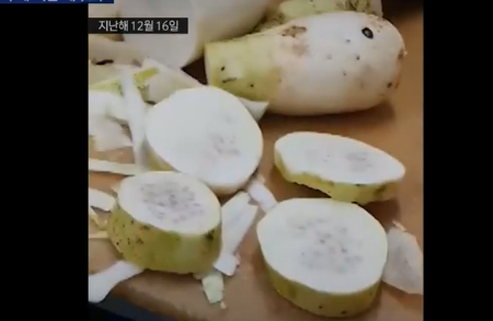 재료를 썰어보면 정상적이지 않음을 알 수 있다.
