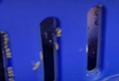포장 직전 김치가 통과하는 금속탐지기에 핀 곰팡이