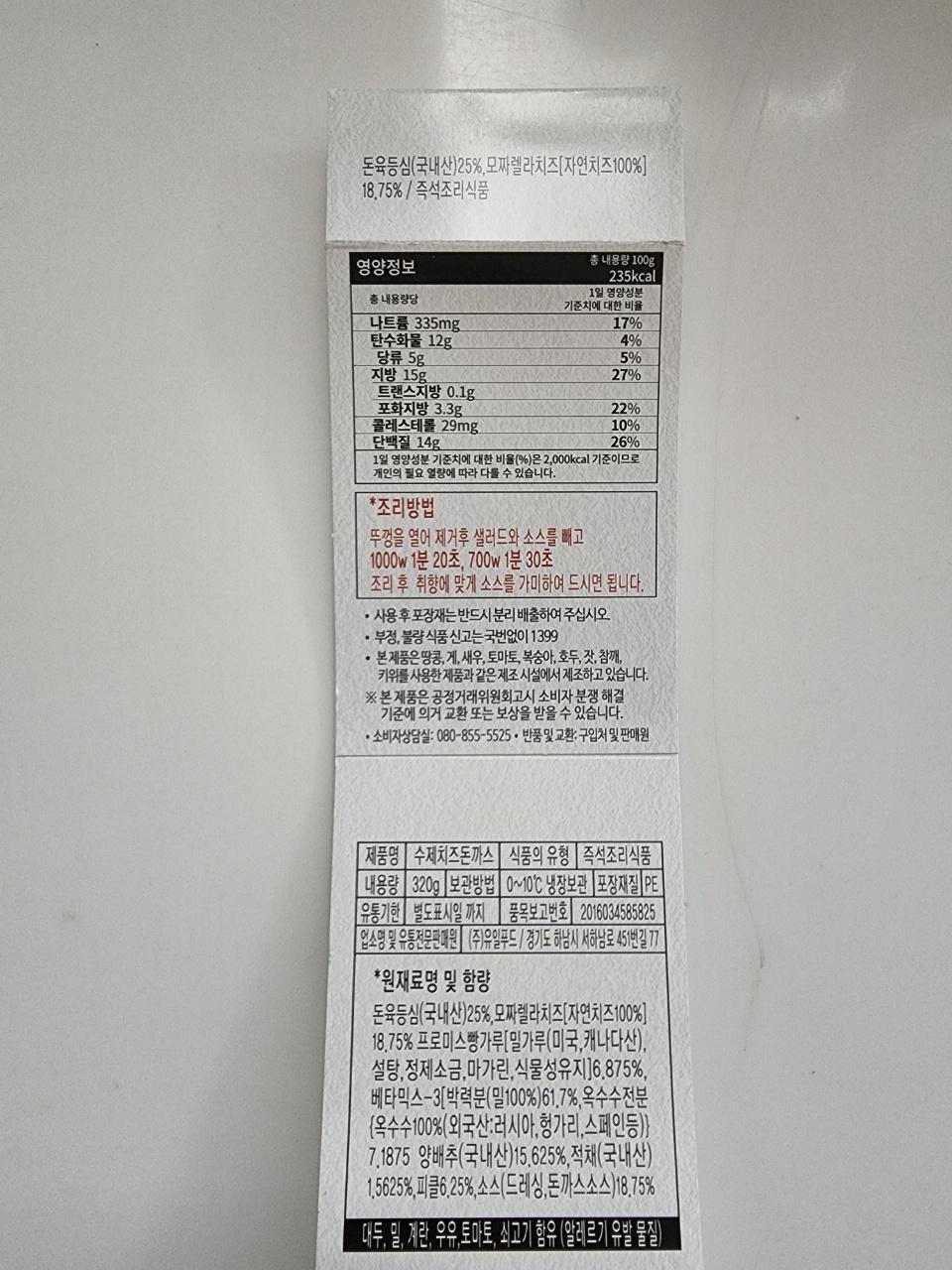 - 조리하실 때 양배추 샐러드와 소스는 반드시 빼고 전자레인지에 돌리셔야 합니다. 실수할까봐 조리 방법을 두 군데나 적어놓았네요.
