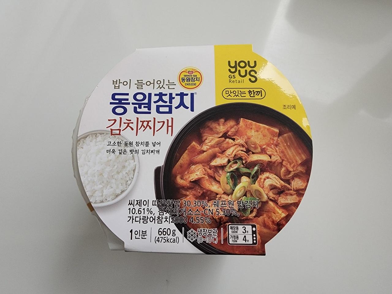 - 단점은 참치 양이 너무 적습니다. 동원참치 엠블럼까지 붙여놨으면 뭔가 임팩트 있는 비주얼리 나와줘야되는데, 그냥 김치찌개예요. 참치는 뒤적거려서 겨우 찾아낸 정도.... 그래서 별점 1개 뺍니다.