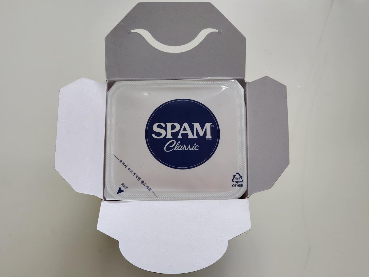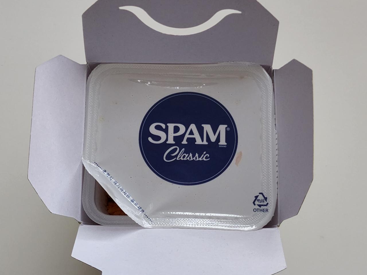 3분 30초 돌렸는데 스팸이 얼어서 아사삭하고 씹히네요. 4분 정도 돌리시는 게 좋을 것 같습니다.