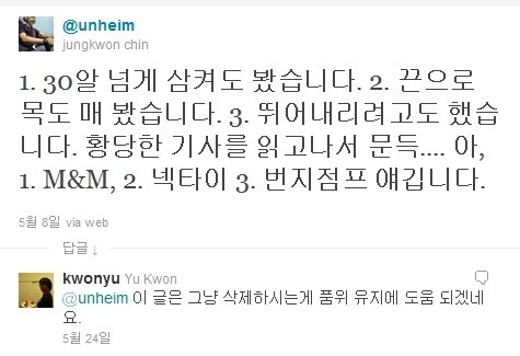 ■ 1. 송지선 아나운서의 자살 암시 트윗을 조롱한 사건 - 2011년 5월 8일