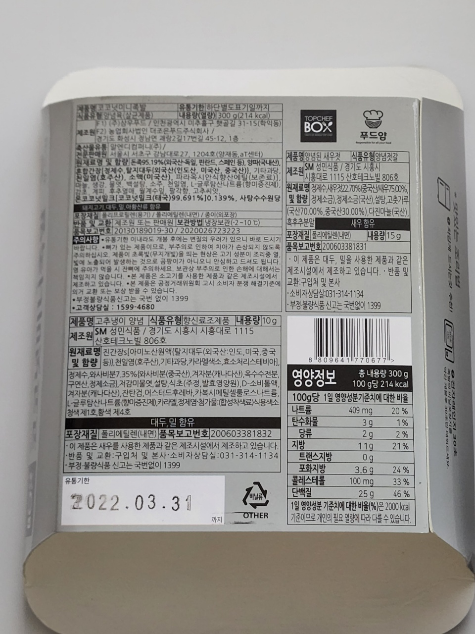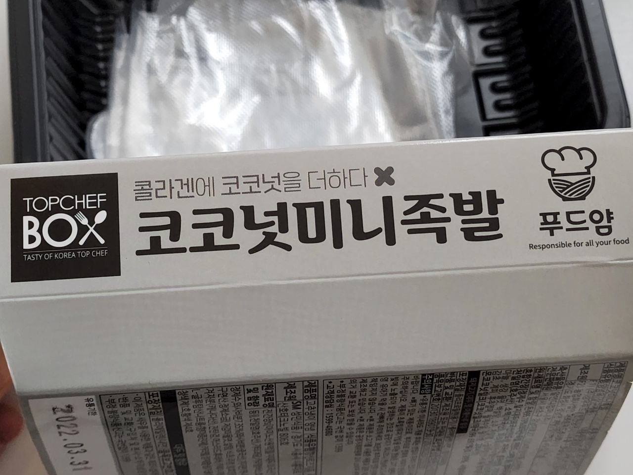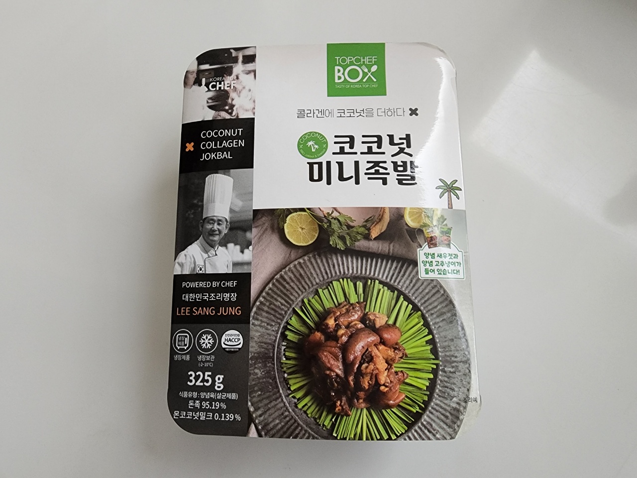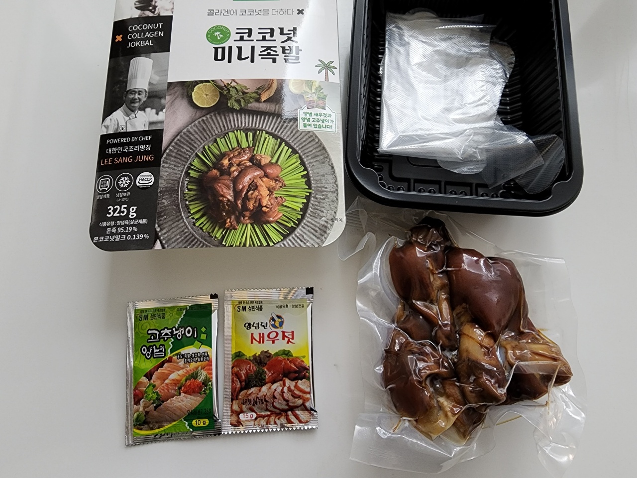 게다가 코코넛 미니족발? 코코넛밀크 0.139% 넣은 게 맛에 어떤 영향이 있는 건지 모르겠지만 함량 자체가 제품에 어떤 영향을 주기엔 사기적인 수준이죠. 대한민국 조리명장 이상정 교수 얼굴 붙어 있다고 절대 혹하지 마세요. 설마 저 분이 제품 개발에 참여하셨을까요? 드셔보기라고 하셨을까요? 이름 갖다 쓰는 조건으로 돈만 받으셨을듯. 아니면 살코기는 저 분이 맛보고 남은 뼈만 판매하는 걸까요?