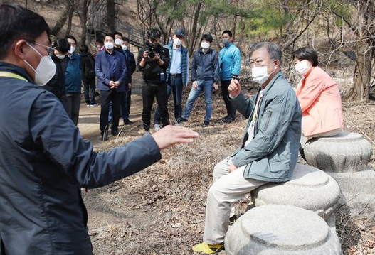 문재인 대통령이 북악산 탐방로 개방을 앞두고 산행을 하면서 법흥사터 초석에 깔고 앉았다고 불교박물관장이 "참담하다"는 입장을 냈고 이를 보도한 법보신문을 여러 언론에서 받아적고 있습니다.