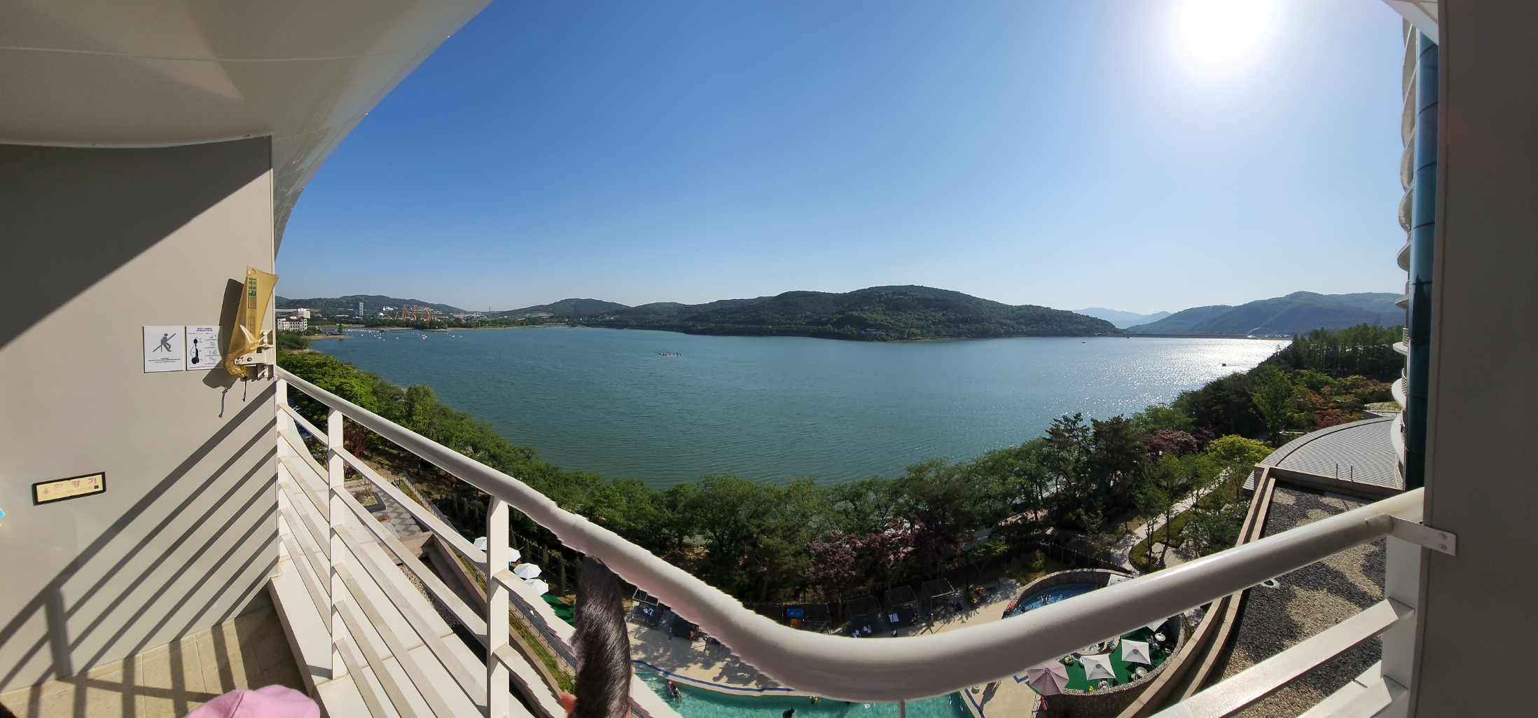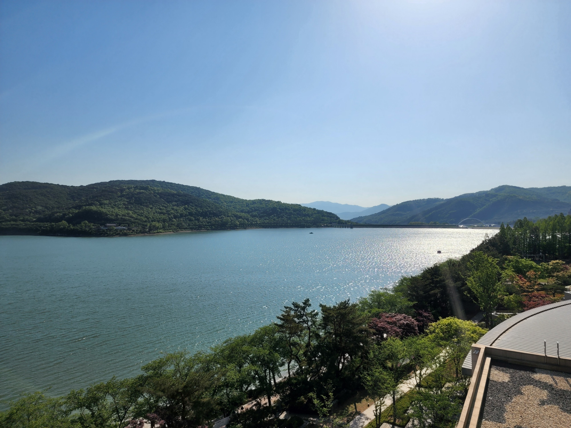 레이크뷰로 객실을 잡으시면 멋진 보문호 풍경을 감상하실 수 있습니다. 정말 아름다운 경치예요. 1층으로 내려가시면 보문호 둘레길로 바로 연결이 됩니다. 트래킹 한다 생각하고 호수를 한 바퀴 도는 것도 멋질 것 같아요. 저희는 시계 반대방향으로 걸어서 경주세계자동차박물관까지 갔다 왔답니다.