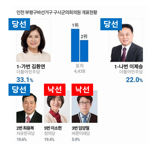 그리고 2018년 6월 13일 제7회 전국 동시 지방선거가 있었습니다. 어떤 구의원보다, 어떤 구의원 후보보다 열심히 했었고, 현직 구의원 프리미엄까지 생각하면 이소헌 의원은 당연히 연임할 것이라 기대되었지만, 3명 뽑는 구의원 선거에서 4위로 득표하며 낙선하고 맙니다. 3위로 당선된 자유한국당 후보에 불과 77표차였습니다.