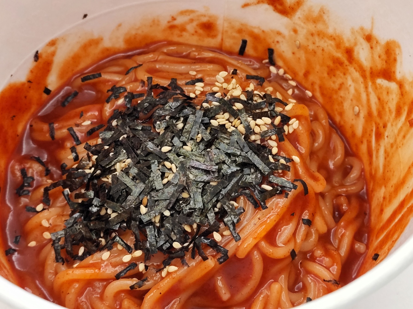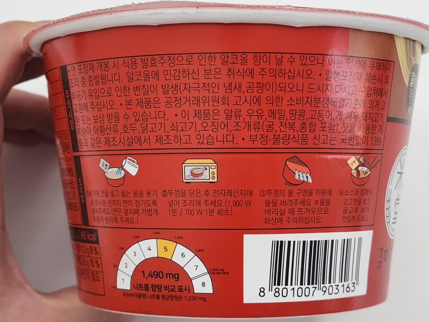 다만, 쫄면 제품 특성 상 조리과정에서 면을 익힌 후 물을 따라 버려야 되는데, 하늘하늘한 뚜껑과 용기를 붙잡고 뜨거운 물을 따라 버리는 것이 쉽지 않습니다. 엄청 뜨겁죠. 스파이시로제 스파게티 등과 같이, 뚜껑을 플라스틱으로 바꾸는 등의 개선이 필요해 보입니다.