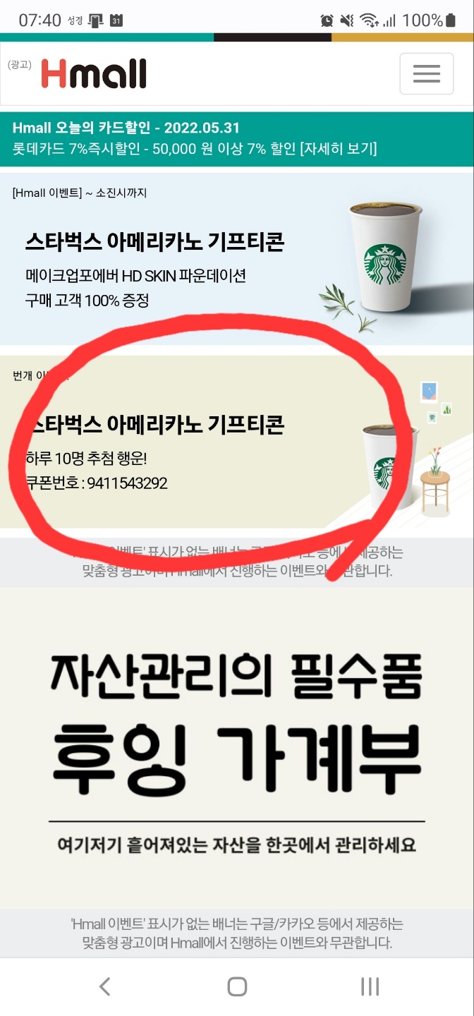 Hmall 고객님을 위한 365일 실시간 Hmall 이벤트 정보, 스타벅스 기프티콘 증정